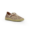 Intricate laser-cut floral patterns add both visual interest and breathability. A wide hook-and-loop strap creates a secure, adjustable fit, while the contrast stitched sole gives the design a relaxed, modern finish.