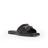 Simple bit hardware shines at the vamp of a slide sandal with a cushioned footbed and flexible outsole for uncompromising comfort.