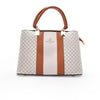 This luxe handbag features a refined and structured silhouette made of bold contrast panels, blending classic design with contemporary flair.