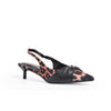 An artfully twisted vamp brings modern dimension to a pointed toe pump set on a kitten heel