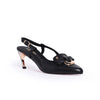 A curved heel and pointy toe bring a sleek, elongated silhouette to a classic day-to-night pump secured by a slingback strap.