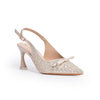 A glamorously embellished pump is set on a flared heel for dance-filled evenings.