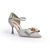 An embellished bow set on a textured upper, adds an extra dose of flair to this occasion-ready ankle-strap pump.