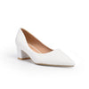 Clean lines highlight the timeless appeal of a classic pointy-toe pump lifted by a comfortable block heel.